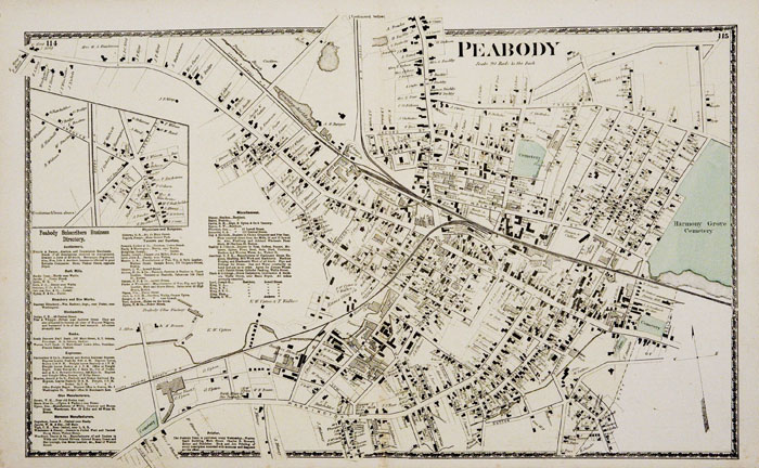 DESCRIPTION: A fine map from Beers' "Atlas of Essex County Massachusetts." Engraved by Worley & Bracher. Printed by Fred Bourquin. Businesses listed on the left hand side.