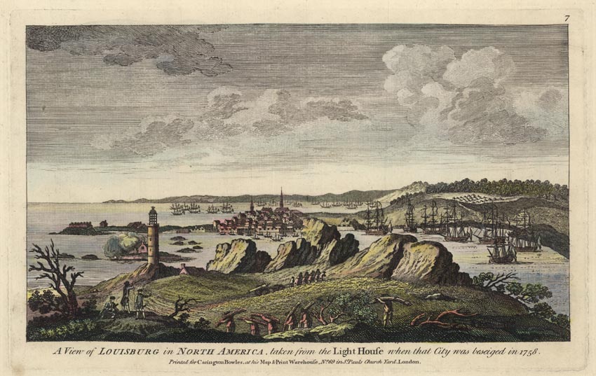 DESCRIPTION: This view is taken from "Scenographia Americana" and re-engraved in a smaller size. <br><br> Located in modern day Nova Scotia, Canada, Louisburg held an important role in the French and Indian War.
