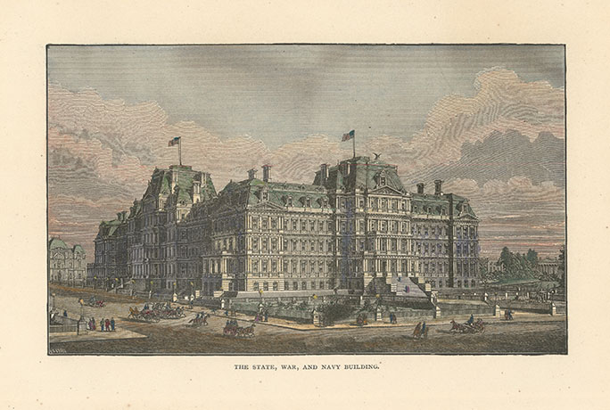 DESCRIPTION: The joint State, War, and Navy Building. This building was used by the State department from July 1875 to April 1947. This print appeared in Picturesque Washington.