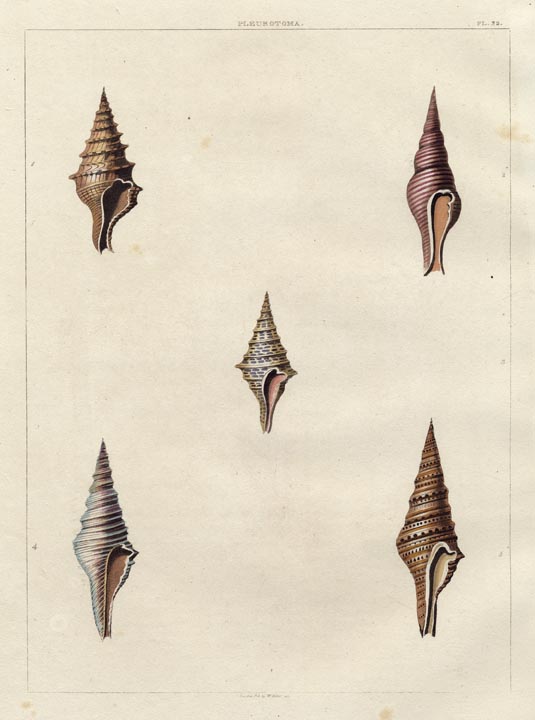 DESCRIPTION: A fine plate from Perry's "Conchology, or the Natural History of Shells." This series is best known for its large sized and beautifully colored engravings. Engraved and colored after the original drawings by John Clarke. Accompanied with a descriptive text sheet.