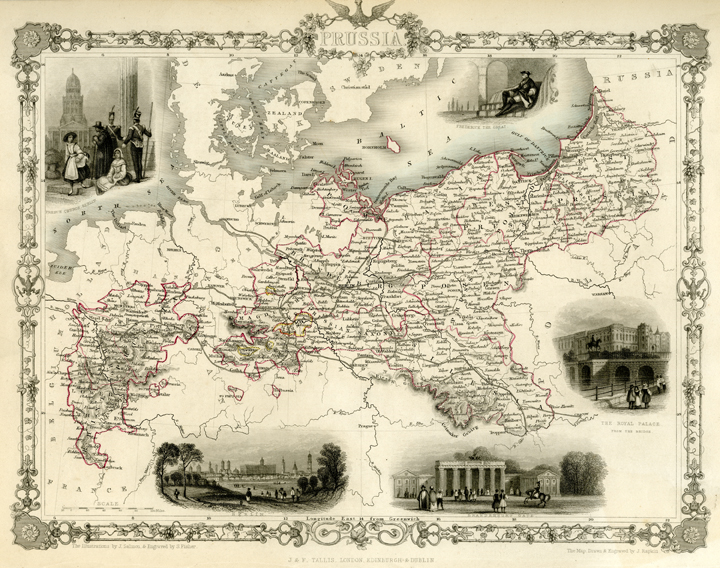 DESCRIPTION: A decorative map with vignette illustrations including views Berlin and the Brandenburg Gate. This map appeared in "The Illustrated Atlas and Modern History of the World".