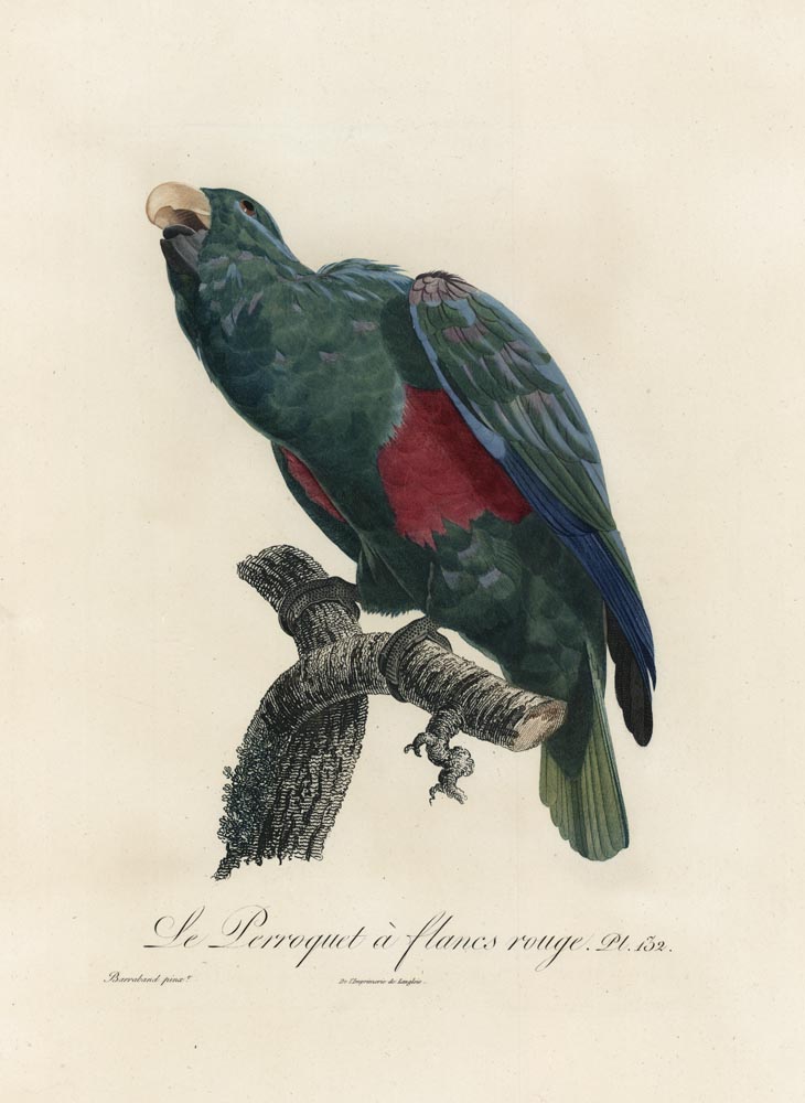 DESCRIPTION: From Francois Levaillant "Histoire naturelle des Perroquets" published in Paris 1801-1805. This print is from what is called the Tall Paper copy.