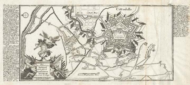 DESCRIPTION: A beautifully engraved map depicting the Battle of Turin that took place on September 7, 1706, during the War of the Spanish Succession. Featured prominently is the citadel of Turin. Gabriel Bodenehr the Elder (c. 1664-1758) was a Swiss artist who worked in Augsburg. He created many topographical views and plans of European and North African cities. Many were gathered under the overall title Le Gloire et la Force de l'Europe.