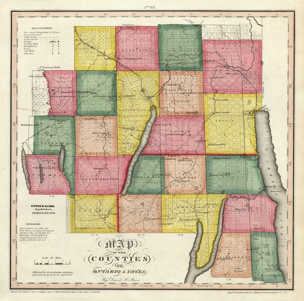 DESCRIPTION: A fine map from Burr's "An Atlas of the State of New York Containing a Map of the State and of the Several Counties. Projected and Drawn by a Uniform Scale... under the Supervision & direction of Simon De Witt, Surveyor General.…" "It is a magnificent publication and was the second atlas of an individual state ever published." (Ristow). Engraved by Rawdon Clark & Co. Albany & Rawdon, Wright & Co. N.Y.