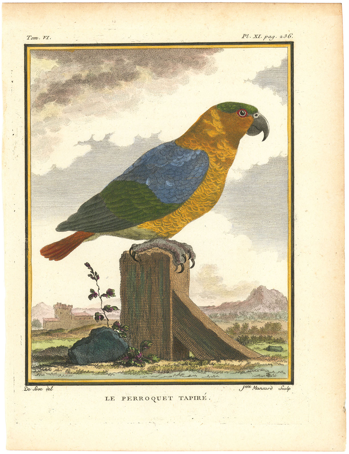 DESCRIPTION: Engraved by Janne Mansard after a drawing by De Seve, this plate is from Histoire Naturelle des Oiseaux by Georges-Louis Leclerc, Comte de Buffon. Serving as Director of the Jardin du Roi in France, Buffon was one of the most influential naturalists of the 18th century. His monumental work sought not only to catalog and describe the world’s bird species but also to portray nature as an interrelated whole, linking meticulous scientific study with a broader philosophical understanding of the natural world.