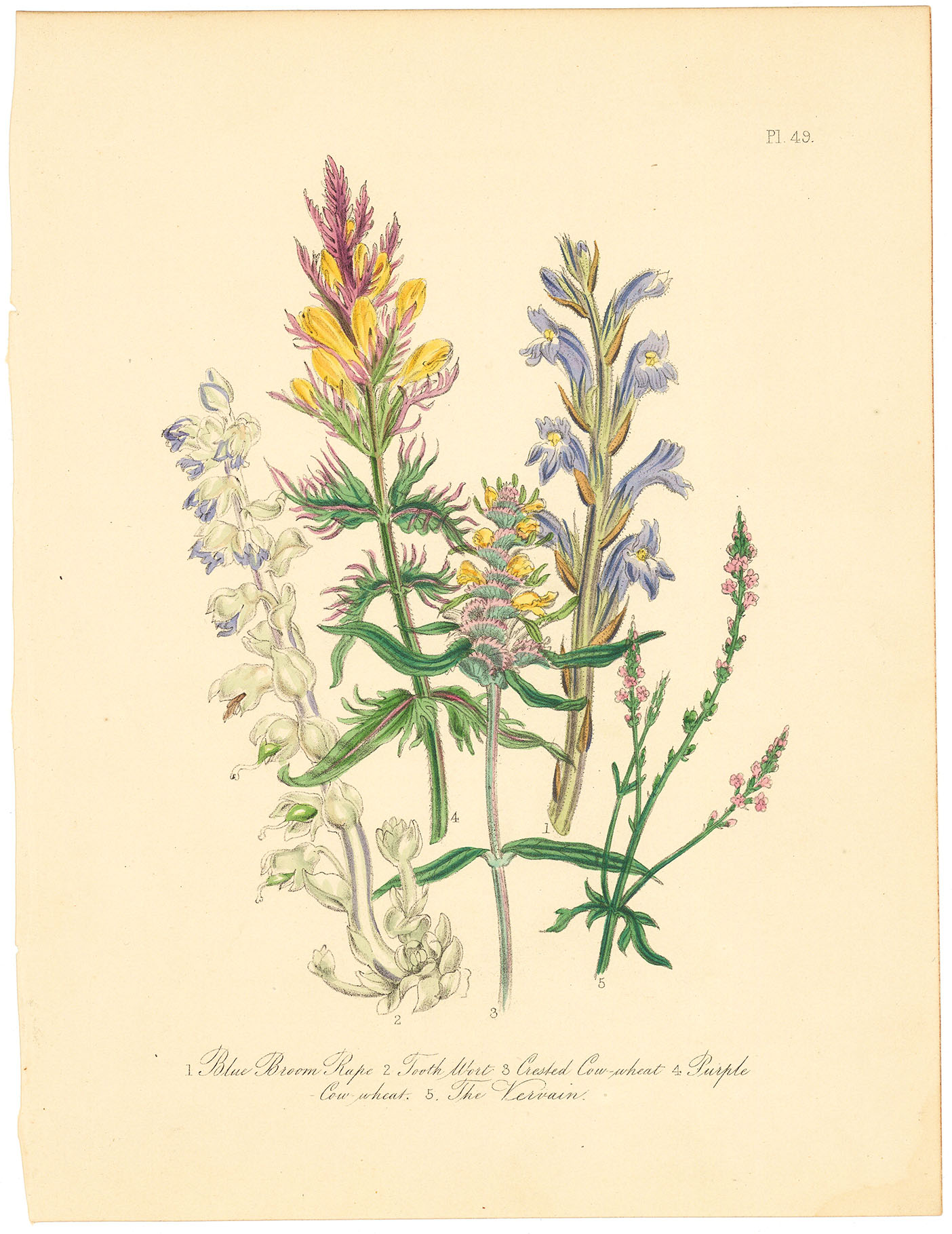 DESCRIPTION: Hand-colored lithograph by Mrs. Jane W. Loudon. From her work, "British Wild Flowers."