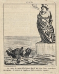 Honore-Victorin Daumier was a prolific French artist, best known for his social and political caricatures. Over the course of his life, Daumier produced 5,000 prints (4,000 lithographs, 1,000 wood engravings) [1], two of which drew the ire of King Louis-Philippe, who had him imprisoned for six months in 1832. Incarceration didn't seem to faze Daumier, as he returned to his usual antics after being let out, which included attacking the regime for its treatment of its citizens. It goes without saying that Daumier was an ardent supporter of the French Revolution when it kicked off in 1848.