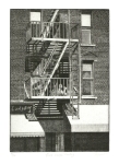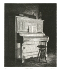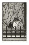 "Often the subject matter for my prints presents itself to me during my daily walks. Depending on my frame of mind, the impulse for an etching may be driven by a myriad of sources; observing and contemplating an individual in a specific environment, the dramatic play of light, dark, and shape, or the textural, structural, and ornamental aspects of architecture. After the initial scene strikes me, I then strive to organize formalistic aspects such as composition, values, and line quality to convey my responses to what I've seen.”