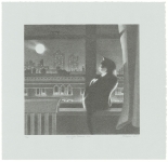 “In my work I try to create a harmonious & cohesive composition using elements distilled from my visual & emotional experience in order to give fleeting moments a permanence and memorable order. Over a lifetime of working, I have found that for me, tonal values and light become the expressive equivalents of mystery & introspection, as well as for the ideals of resolution and fulfillment. I have come to focus my skills on printmaking because it offers me an involvement in a medium that demands disciplined control, as well as a sensual & rich material experience.”