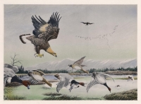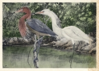 Rex Brasher was an American wildlife illustrator, born in Brooklyn, New York. Over the course of several decades, Brasher produced 875 watercolors, illustrating 1,200 bird species and sub-species listed in the American Ornithologists' Union's "Checklist of North American Birds." Incredibly, this amounts to nearly twice as many paintings as John James Audubon. He was also noted for having destroyed some 700 works along the way because he was dissatisfied with how they came out, committed to depicting each bird as lifelike as possible.
