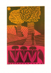 Ever since she moved to New York, she has been specializing in printmaking, linoleum cuts, and monotypes.  Her artwork is inspired by several experiences she has had, traveling from Europe to Africa, then to North and South America.